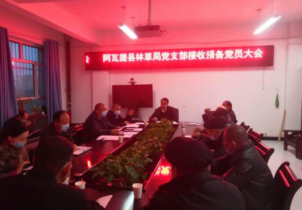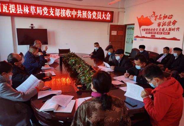 11月24日,阿瓦提县林草局党支部召开接收预备党员大会,讨论重点培养对巴图尔江同志转预备党员的问题。大会由正式党员、发展对象共计27人参会。会议由支部书记宋建阁主持。