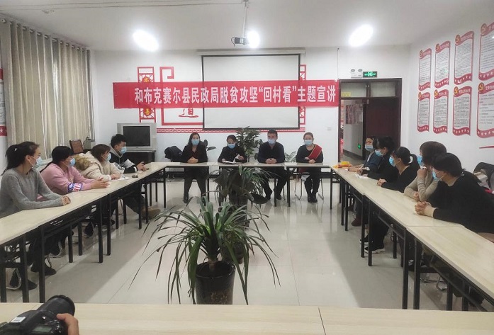 清风网讯(和布克赛尔县民政局 :那木吉丽玛)为进一步引导困难群众知恩感恩报恩、激发内生动力、提高群众满意度、激励机关党员增强党性意识、改进作风、持续教育引导党员干部悟初心、守初心、践初心,记使命、强担当、善作为,12月8日,县民政局党组书记恩和巴依尔同志带领机关党员干部和原驻村部分干部,深入和什托洛盖镇查斯托洛盖村开展脱贫攻坚“回村看”主题党日活动。活动中积极组织开展了“微朗读”“微党课”“微故事”“微分享”学用活动,丰富了党员教育培训方式、提升了党员教育培训效果,助推“四微”学用活动形成常态化机制。