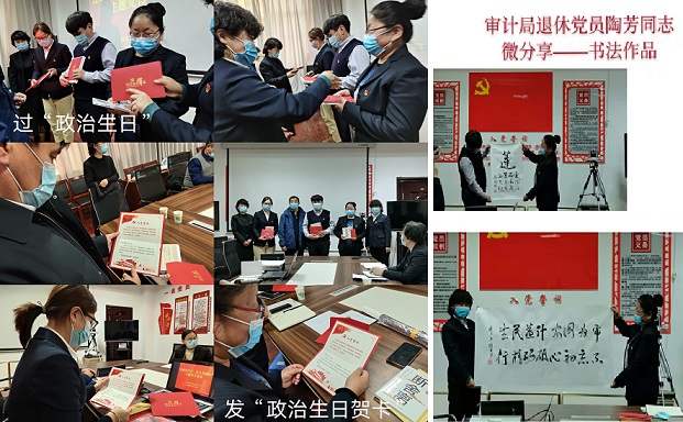 支部全体党员面对鲜红的党旗,高举右拳,字字铿锵 ,重温入党誓词。为审计系统入党日期在12月份的三名党员同志集体过政治生日。党员代表给12月份过“政治生日”的党员送上精心准备的生日贺卡及礼物—书籍,勉励多读书,读好书,自觉加强理论学习,筑牢信仰之基。“过政治生日”这种庄重的政治仪式,进一步增强党员的归属感,荣誉感和责任感,提醒和鼓励党员恪守初心使命,敢于担当奉献,以实际行动践行全心全意为人民服务的宗旨,永葆党员的革命本色。