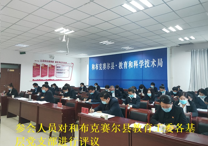最后,参会人员对和布克赛尔县教育工委各基层党支部进行了评议。