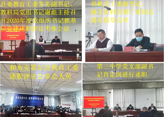 清风网讯(通讯员:布里根 桑格)2021年1月14日下午,中共和布克赛尔县教育工作委员会2020年度党组织书记抓基层党建述职评议考核会议在教科局三楼会议室召开。会议由县委教育工委常务副书记、教科局党组书记、副局长谢彪同志主持,县机关工委副书记 一级主任科员黄广涛同志、县直学校副科级以上领导、各基层党支部书记、民办幼儿园园长、教科局重点科室主任、人大代表、党代表以及部分党员代表参加了会议。