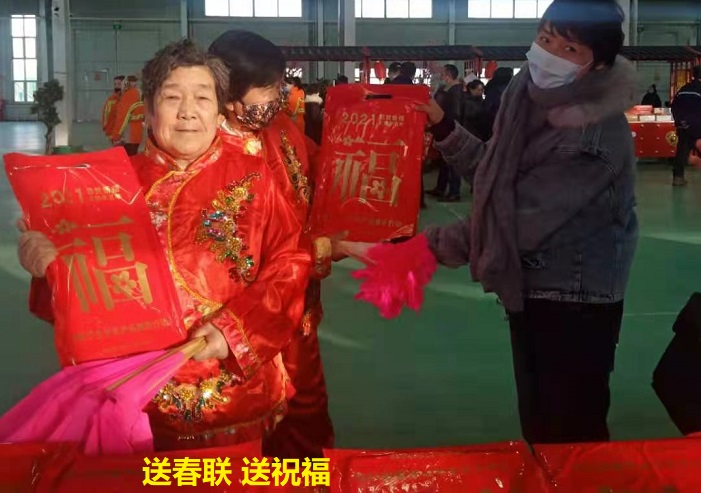 活动现场,党员干部们为前来购买年货的各族群众免费送75副春联和“福”字,送去了新春的祝福。