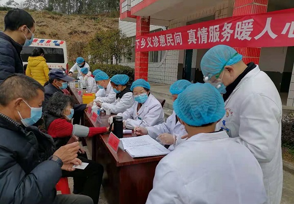 清风网讯(通讯员; 李永存 杜林 祝叶 刘颖英)3月4日,湖北英山县方家咀乡卫生院组织10多名以党员为首的医疗服务队走进该乡葫芦盆村免费体检义诊活动, 葫芦盆村是方家咀乡比较偏远的库区村。活动现场,医疗队的医务专家们认真为贫困患者诊病,做健康体检,为老人讲解康复治疗措施等,自我保健、健康生活方式等方面的健康指导。此次活动健康体检服务项目包括血压、内外科、血脂血糖、等多项检查服务。体检活动现场的医生们详细认真地为该村群众诊病。不厌其烦解答村民的提问。
