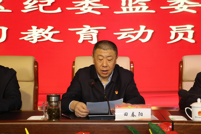 3月8日上午,赛罕区纪委监委召开党史学习教育动员会。区委常委、纪委书记、监委主任田春阳作动员讲话,区纪委副书记、监委副主任齐全平主持会议,区纪委监委班子成员、全体党员干部参加了会议。