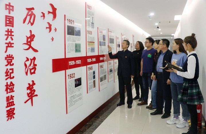 一面廉政文化墙,就是一部浓缩的党史教课书,一堂廉政文化墙前的讲党课,就是共产党人红色百年奋斗伟业的再教育。