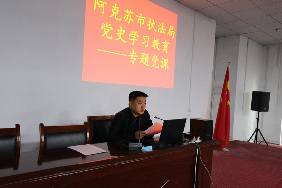 3月31日下午,阿克苏市城市管理行政执法局党委组织局系统全体党员以“讲党史、学党史、知党情”为主题的学党史专题党课开讲了。