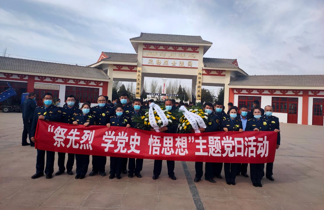4月1日上午,克孜勒苏执法支队组织支队部分党员、入党积极分子、发展对象开展“祭先烈 学党史 悟思想”主题党日活动。在烈士陵园纪念碑前,向中印边界、反恐平暴烈士郑重敬献花篮,向英雄默哀鞠躬致敬,同唱国歌表达爱国之情,重温入党誓词强化党性意识,坚定理想信念,筑牢忠诚根基。在讲解员的引导讲解下,聆听了革命烈士的英勇事迹,缅怀了革命先烈的丰功伟绩。