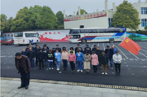活动现场,伴随着庄严的国歌声,大家肃穆而立、神情凝重,为党和人民事业英勇献身的革命先烈默哀致敬;接着在革命烈士纪念碑前,全体党员紧握右拳进行庄严宣誓,重温入党誓词;随后走向革命烈士纪念碑,向革命烈士敬献花圈,支部代表向前整理花圈缎带;最后在讲解员带领下,参观了贺绿汀纪念馆,听着讲解员的娴熟解说,党员们仿佛进入了历史空间,他们体会着、感悟着当时革命战争的惨烈和人们的生活的艰苦。