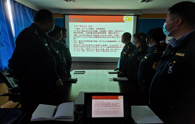 一是党支部组织委员讲微党课。百年风华茂,奋进正当时。党支部组织委员从新民主主义革命、社会主义革命和建设、改革开放和中国特色社会主义道路的开创与发展、中国特色社会主义进入新时代四个阶段讲述了中国共产党波澜壮阔的百年历史,要求党员干部一定要全身心投入党史学习教育,做到常学常新,深入思考,不断从党史中升华理想信念,以史明鉴,提高工作本领。