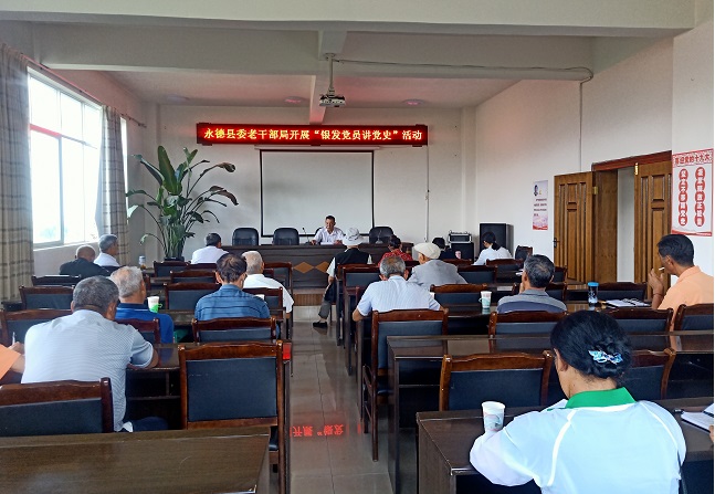 自党史学习教育开展以来,永德县委老干部局积极响应,充分发挥离退休干部熟悉党史的独特优势和作用,引导老干部讲好党的革命故事、传承红色基因,依托月学习制度,每月开展一次党史集中学习,并邀请一名老同志结合切身体会和感悟进行党史宣讲活动。