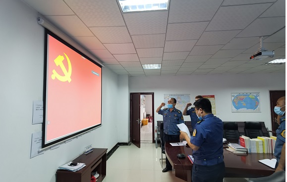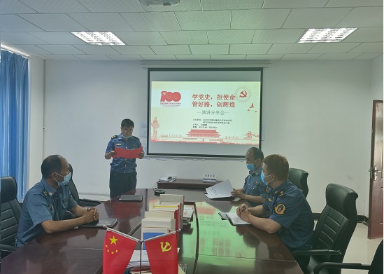 5月19日下午16时30分,柯坪执法大队开展了“学党史,担使命,管好路,创辉煌”党史教育主题演讲分享会,分享会以现场及视频会议形式同步召开,确保了党员参加率百分百。活动开始,由党支部书记哈斯木•买斯木同志带领全体党员干部重温入党誓词,而后由大队党史宣讲员汤疆鹏同志通过音视频播放及生动演讲共同分享回顾了13名代表在南湖嘉兴游船上召开中共一大的“红船精神”,使全体干部职工对中共一大召开的环境、背景、时代意义有了深刻的认识。