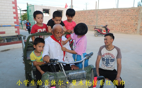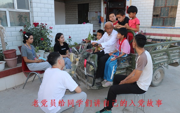 托万克拜什艾日克村老党员吾休尔·曼木托拉给学生们讲起了自己的故事,他激动地说:我今年73岁了,我是生在解放前,长在红旗下的一名老党员,我已经有50岁的党龄了。去年我观看了党的十九届五中全会开幕式,听了习近平总书记的报告,我真的特别激动,今天真的对党有很多心里话要说,看到咱们的祖国越来越强大,中国共产党越来越伟大,人民生活越来越幸福,作为一名老党员我觉得充满了使命感,也有一种从未感受过的满足感。
