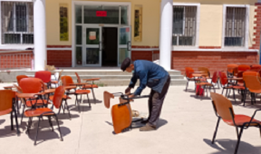在村党支部书记麦热燕木·肉孜的号召和组织下,7名农牧民党员、干部和6名农牧民群众主动加入志愿服务活动的行列当中,充分发扬不怕脏、不怕累的劳动精神和雷锋同志无私奉献的精神,将村民活动中心里十几个损坏的座椅一一进行维修,并将活动中心和小会议室内外的卫生全部清理打扫干净、所有物品全部重新摆放整齐。