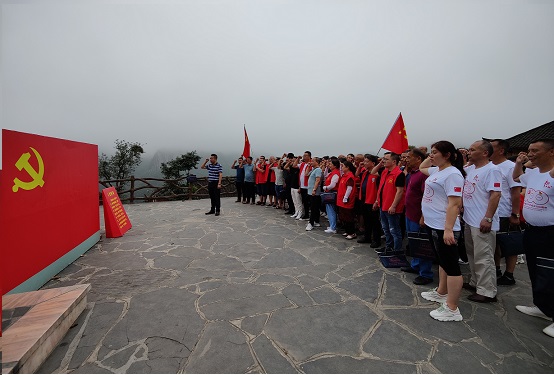在精准扶贫广场,邵东市卫生健康局党委委员、副局长李湘兵带领全体党员重温了入党誓词。