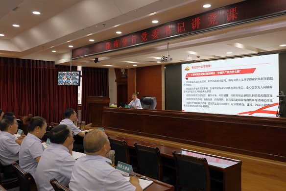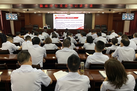 6月25日,农行陇南分行党委书记、行长林明以《学好百年党史,汲取奋进力量,开创陇南农行改革发展新局面》为题为全行讲授党史学习教育专题党课。