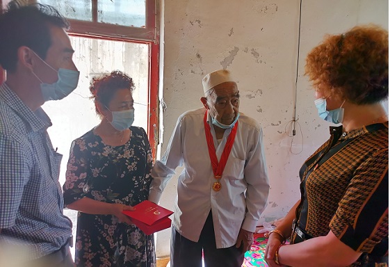 2021年正逢党的100岁生日,颁发“光荣在党50年”纪念章这项工作是庆祝活动的重要组成部分。为庆祝中国共产党成立100周年,进一步增强老党员的荣誉感、归属感和使命感,6月28日下午,农业农村局第三党支部书记怕热扎提•艾则孜及其他支部委员分别到老党员家中,为拥有50年以上党龄的2名老党员颁发“光荣在党50年”纪念章,表达对老党员的关心关爱。