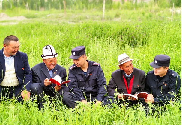 清风网讯 (膘尔托考依边境派出所:刘楠) 7月1日,在新疆克州乌恰县膘尔托考依边境派出所阿合奇村警务室草地旁,老党员们席地而坐,用亲身经历为年轻党员民警们上了一堂特别而又生动的党史学习教育课。