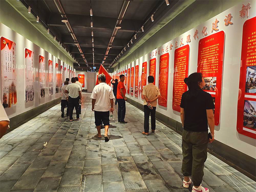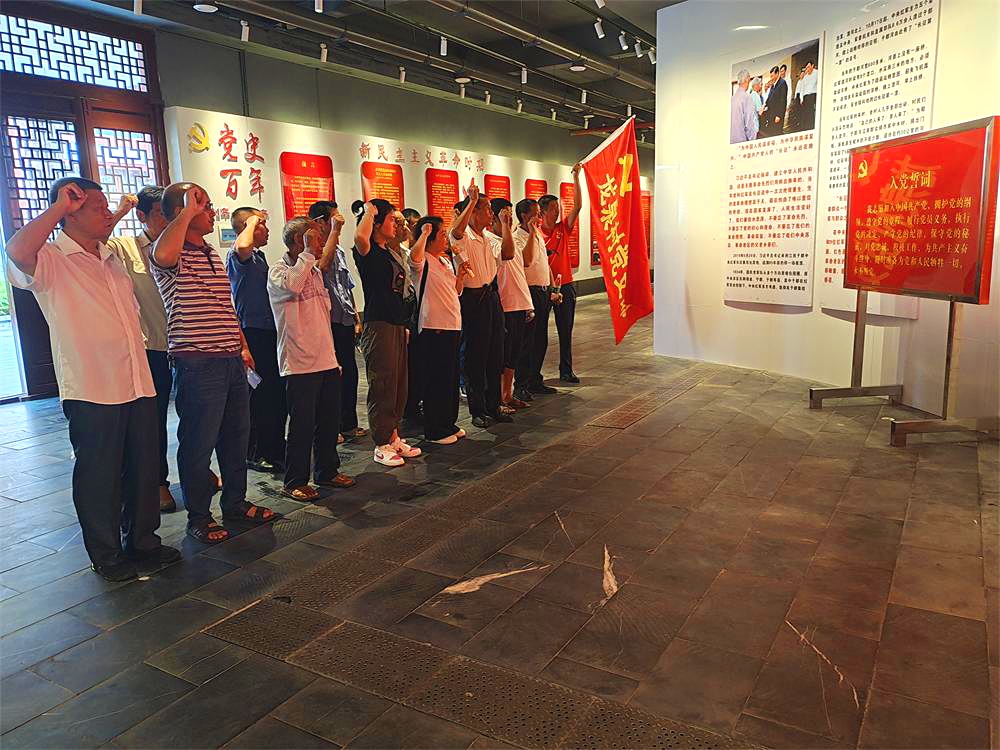 在村支部书记殷海云的带领下,首先全体党员来到荷塘小镇面对鲜红的党旗,重温了入党誓词,回顾了入党时的铮铮誓言。在讲解员的引领下,大家怀着崇敬的心情参观了纪念馆,通过革命文字、历史图片、战争实物等展览,聆听一桩桩震撼的历史故事,面对一件件珍贵文物,观看一张张感人照片,深入地了解了革命先烈波澜壮阔的革命历史,