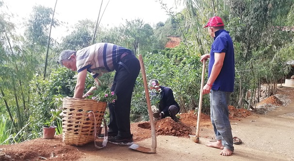党员带头干,村民来聚力。“最近雨水天,在家闲着也呆不住,还不如出来劳动劳动,也能锻炼身体,我们小组党员带动群众共20多人在这里栽花除草,昨天到今天,干了两天刚结束,虽然累点,看着亲手栽种的花也值了。”正在路旁栽种花苗的党员辉树聪说道。