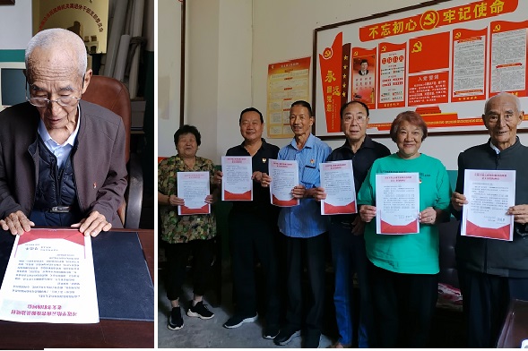 清风网讯(市民政局老干支部:王琴)习近平总书记给云南省沧源县边境村老支书们的回信,让边疆沸腾了!临沧人民欢欣鼓舞,阿佤山击响木鼓齐声欢呼,再唱《阿佤人民唱新歌》!市民政局机关离退休干部党支部全体党员,怀着同样激动的心情认真学习习近平总书记给老支书们的回信。首先是第一时间召开支委会,集中学习《习近平给云南省沧源县边境村老支书们的回信》,同时,研究支部学习、宣传方案;二是以党小组活动的形式,召开党员会议集中学习,大家共同学习,共同感受,深刻领会习近平总书记对边疆人民的关心和期望;三是给每一位党员打印了一份彩色的《习近平给云南省沧源县边境村老支书们的回信》,让老党员们方便学习;四是适时将各级党委印发的学习要求、相关文件发在支部工作微信群上,确保宣传学习精神的及时传达;五是要求大家写出学习《习近平给云南省沧源县边境村老支书们的回信》的感想感言。