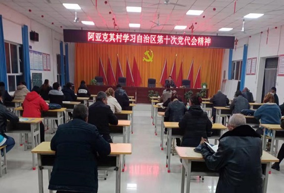 10月30日,阿亚克其村组织村“两委”干部、“访惠聚”工作队员、全村党员专题学习自治区党代会精神。学习陈全国书记代表中共新疆维吾尔自治区第九届委员会向大会作的报告摘登、关于中国共产党新疆维吾尔自治区第九届委员会的决议和陈全国书记在自治区党委十届一次全会上的讲话精神。阿亚克其村党支部书记带着党员干部,一字一句学习,他要求工作队、村“两委”及党员,结合工作实际认真学习会议精神并做好宣传。他说:“我们要不折不扣落实好党代会精神,持续调整优化产业结构,带领全村干部群众同心实干,切实把学习成效转化为推动村集体经济高质量发展的动力。”