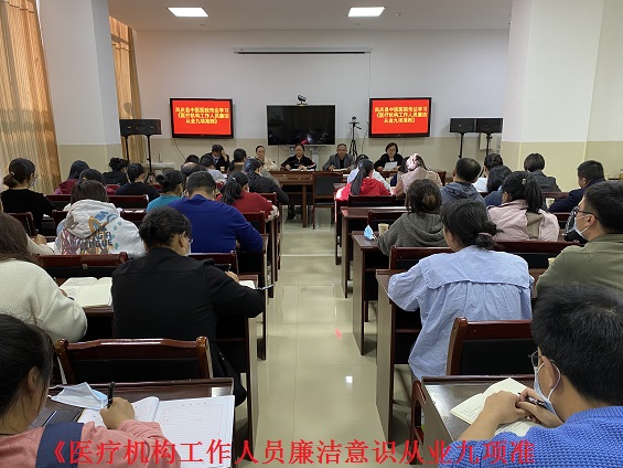 12月22日,党总支组织全体党员及中层干部,发扬理论联系实际优良学风,把学习内容同《医疗机构工作人员廉洁从业九项准则》结合起来学,全面贯彻党的十九届中央纪委五次全会精神,学习贯彻省纪委十届六次全会精神,将强化医德医风和行业作风建设与开展清廉医院建设结合起来,要求与会人员完善制度建设,强化监督管理,坚持惩处与教育相结合,搞好自查自纠,着力构建和谐的医患关系,探索建立教育、制度、监督并重的反腐倡廉建设的长效机制。