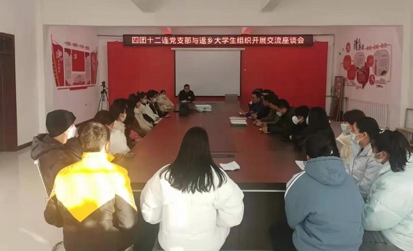 清风网讯(四团文体广电服务中心:沈文武)为进一步增强返乡大学生的社会责任感和使命感,加强返乡大学生的管理工作,近日,新疆生产建设兵团第一师四团12连党支部组织召开寒假返乡大学生座谈会。