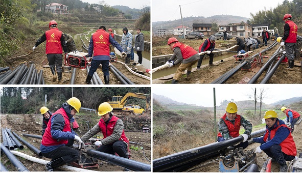 经过连续12个小时的艰苦奋战,1500米应急管道拉通。市自来水公司的志愿者们放弃了与亲朋好友欢聚一堂的美好时光,时刻牢记党员的使命,不畏严寒抢险救援,保障了污水正常排放,将党旗高高飘扬在抢险一线。