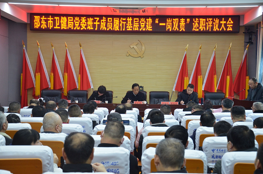 清风网讯(通讯员:王瑛、兰静、王学强) 2月25日上午,邵东市卫健局党委班子成员履行“一岗双责”、党组织书记履行基层党建和意识形态工作述职评议大会召开。该市卫健局班子成员、机关党员干部和所属党组织书记共80人参加。