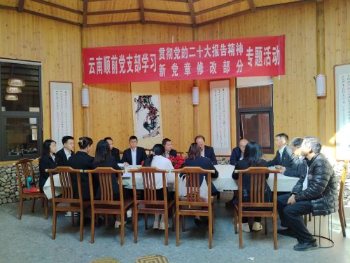 凤庆县琼英古树茶专业合作社党支部与云南顺前党支部一起,开展学习贯彻党的二十大精神、新党章修改部分内容等专题学习活动,重温入党誓词,慰问琼英村老党员。