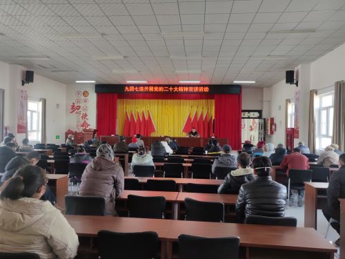 为深入学习宣传党的二十大精神,1月6日,一师九团党委宣讲团第八宣讲组到九团七连进行宣讲。七连全体“两委”、党员、职工54人参加宣讲。