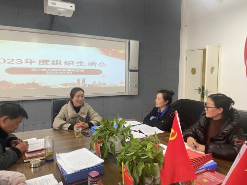 2023年2月6日,第二幼儿园党支部召开2022年度组织生活会,教育局党组赵丽局长到会指导,会议由党支部书记姚柳同志主持。