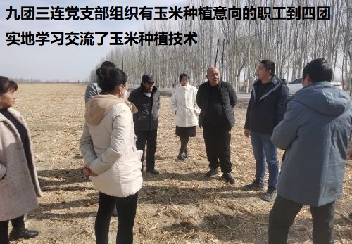 为落实兵、师、团党委的安排部署,新疆生产建设兵团第一师阿拉尔市九团三连党支部组织有玉米种植意向的职工到四团实地学习交流了玉米种植技术,职工们向四团农发中心技术人员和玉米种植户学习了玉米种植的相关事宜。