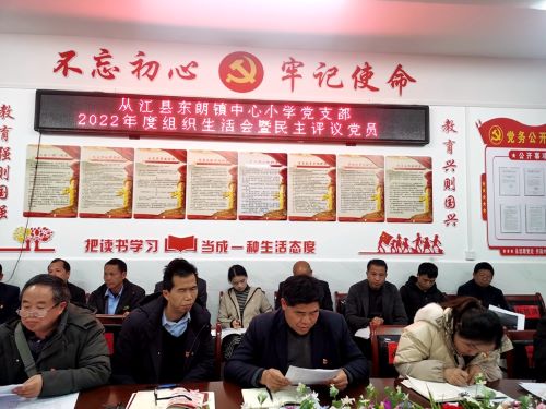 为进一步加强党员组织队伍建设,全面提高党员的思想政治素养,2023年3月1日,从江县东朗镇中心小学党支部召开2022年度组织生活会和民主评议党员。会议由学校党支部书记姚茂松主持,全体党员参加了会议。