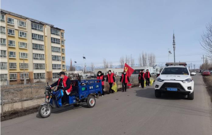 二是开展学雷锋绿色环保志愿服务活动。大队党支部联合新源县交通运输局、新源县别斯托别新村社区开展绿色环保志愿服务活动,在菜市场、居民小区、街道垃圾易堆落处打扫卫生,向社区居民发放《文明出行倡议书》,号召大家文明出行,展现文明形象,共同营造文明和谐的生活环境。