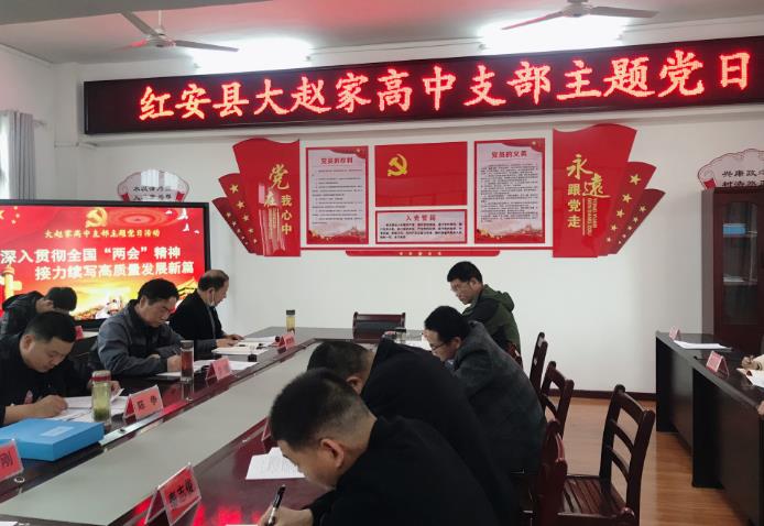 4月3日上午,红安县大赵家高中党支部举行以“深入贯彻全国‘两会’精神,接力续写高质量发展新篇”为主题的支部主题党日活动。