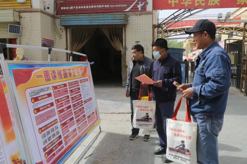 4月15日是第八个全民国家安全日。为深入贯彻落实总体国家安全观,全面增强广大职工群众国家安全意识,4月14日,七团党委组织机关党员干部在七团农贸市场开展国家安全日宣传教育活动。