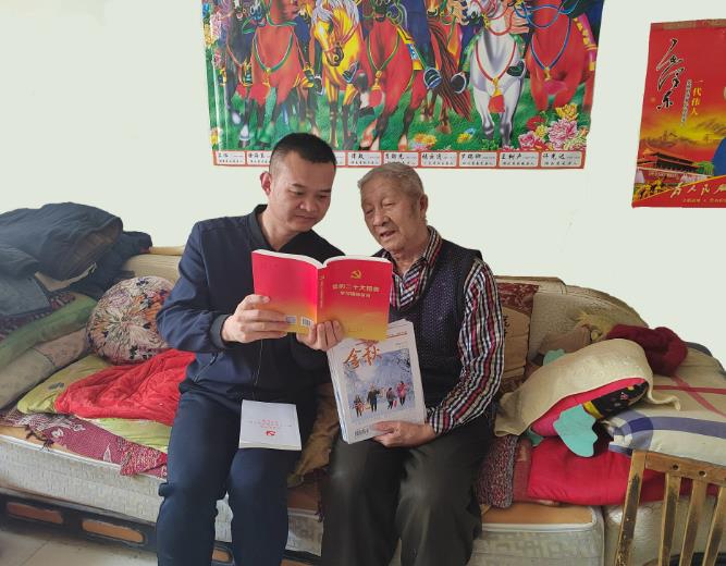 宣讲现场,社区党员郝淑军同志用通俗易懂的语言讲解党的二十大精神的重要意义,分享了自己参加志愿服务的真实感受。志愿者们还贴心的为年老体弱、行动不便的老党员们送去《党的二十大报告辅导百问》书籍,确保老党员“不掉队”、“不漏学”。“今年是我入党的第46年,作为一名老党员,我要做增进民生福祉的重要力量,从自身、从点滴做起,继续为党支部、社区发挥积极作用。”老党员赵祖仁郑重的说道。
