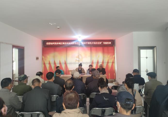 4月19日, 第一师四团驻阿克苏城区离退休党支部书记上“退休不褪色夕阳亦生辉”专题党课,党课由第一党支部书记周爱萍主讲。