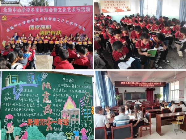 积极探索“党建+五育并举”模式,全面推进素质教育。为全面贯彻党的教育方针,永新中心校强化党建引领,落实“双减”提效率、“五育并举”促提升,以“三有”措施助力课后服务有序推进。学校立足校情,针对学生身体素质和阅读能力偏弱、表达能力不强、创新能力欠缺等方面的短板弱项,最大限度整合学校资源,“量身定制”符合学生实际的服务项目,以晨读抽背、校园广播、课后服务助力阅读成为常态,将“四操两活动”贯穿于每周的日常工作中,在每年的冬运会、庆“六一”等活动中,学校均为学生搭建体育竞技、才艺表演的舞台,以此来展示学校落实“五育并举”成果,从而全面推进素质教育。