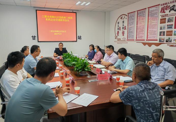 会上由社区党总支书记陈阳阳向在座共建单位汇报了2023年光明路社区上半年党建工作计划及工作目标,进行部署安排,重点就社区近期安全生产、创城、志愿服务活动、社区基层服务治理等工作进行汇报,随后各共建单位纷纷表示:“要结合自身实际立足岗位实践,全力配合好各项事务的有序开展,为共建共享文明团镇民心聚力,打造魅力甘泉,贡献出一份力量。”