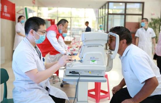 活动现场,眼科杨亚新主任、援疆专家唐旭园副主任,耳鼻喉科潘阳春主任带领着医护人员拉起横幅、摆好桌椅,为过往的各族患者及群众免费做裂隙灯显微镜检查、电脑验光、测视力、量血压、检查眼疾、教授如何正确保护视力、发放健康宣传手册……
