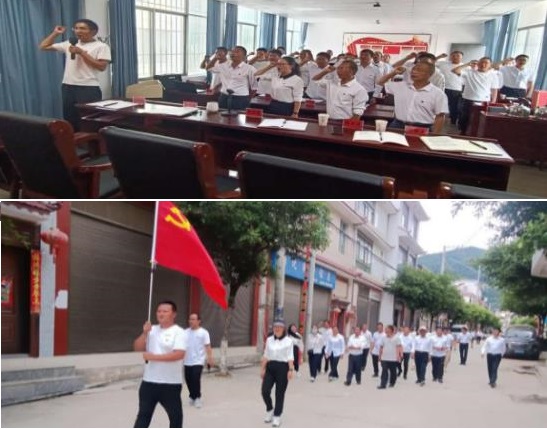 活动中,党支部书记、校长张茂书给大家上了一堂精彩的党课;党支部副书记、总务主任带领大家重温入党誓词;全体人员前往乡村振兴示范点进行现场参观,先后参观了“绿美”村庄、“绿美庭院”、公租房、乡体育馆、自办宴席点、彝乡陀螺民俗文化中心和彝族文化广场等,听取党支部纪律检查委员、办公室主任现场解说,深入了解党建引领基层治理、产业发展、项目建设情况。