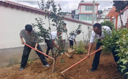 活动最后,大家齐动手,为腰街完小栽树、栽花,共建绿美校园。