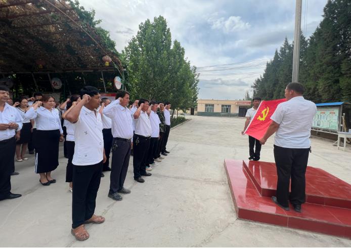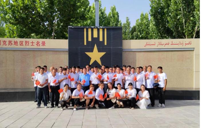 “今天我光荣地加入了中国共产党,成为一名共产党员,我感到无比的自豪!”7月1日,在中国共产党成立102周年之际,新疆阿克苏地区阿克苏市执法局驻喀拉塔勒镇尤喀克萨提村“访惠聚”工作队组织全村党员开展“党旗映天山”主题党日活动,通过参观阿克苏人民英雄纪念碑,烈士陵园、重温入党誓词、为新党员佩戴党员徽章等活动,引导全体党员始终牢记党的初心和使命。在重温入党誓词活动中。伴随这铿锵的誓言,激发在场的每位党员对党忠诚,不忘初心表达对党无限热爱,更加坚定理想信念,始终为人民谋幸福。