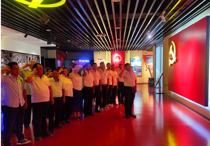 在党史馆,第一书记夏永革带领大家,一起回顾党的发展历史。党史馆通过一张张图片、一件件实物、一个个雕塑,让前来参观的党员干部深切感受中国共产党的发展历程。了解到了中国革命从风雨飘摇的南湖中一艘红船走到今天,是中国共产党通过百年奋斗,无数英雄先辈的牺牲和鲜血,换来了今天的祖国强大和人民的美好生活。结束参观前,全体党员重温入党誓词,“我志愿加入中国共产党……”誓词在馆内回荡,令人心潮澎湃。