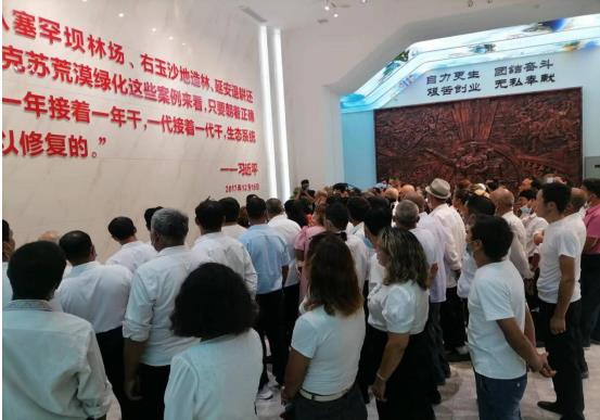 走进纪念馆,党员们凝视着一幅幅弥足珍贵的照片、一个个寓意深刻的场景,一篇篇生动详实的文字叙述,聆听讲解员详细讲述柯柯牙地区从昔日“漫卷狂风蚀春色,迷蒙黄沙掩碧空”的荒原大漠到今天“风拂杨柳千顷绿,水润桃杏万园红”的苍茫林海的变化。“一年接着一年干,一代接着一代干,一张蓝图绘到底”立下愚公移山志的柯柯牙精神让每位党员得到了精神洗礼和锤炼了党性修养。