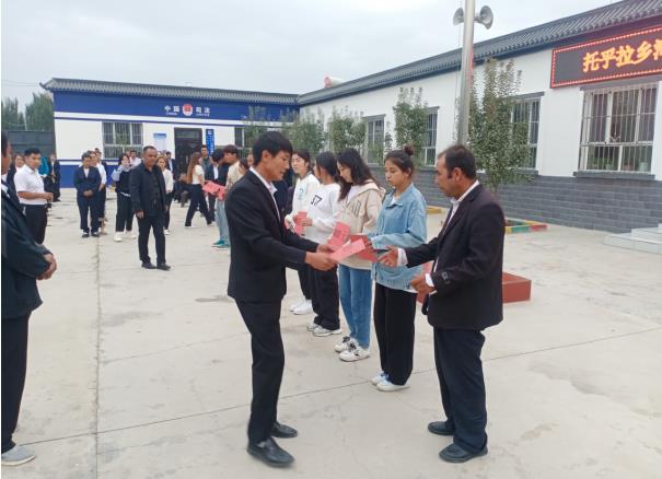 村党支部委员买合木提·买提尼牙孜宣读了河畔村2023年被各类高校录取人员名单,10名高校新生精神饱满、兴高采烈地走到前台,在工作队、村干部和全村父老乡亲的祝福声中领取了奖学金。