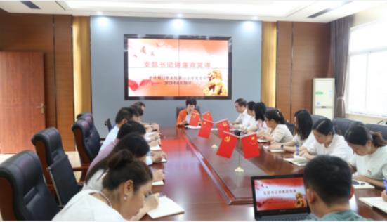 活动从落实规定动作、学习文件精神、书记上党课、观看党风廉政专题警示教育片四个方面开展。活动开始,全体党员同志面向党旗,高举右拳,重温入党誓词,铮铮誓言彰显了对党的无限忠诚和对人民的热烈情怀,也坚定了党员教师们依法履职、爱岗敬业、廉洁奉公的信心和决心。