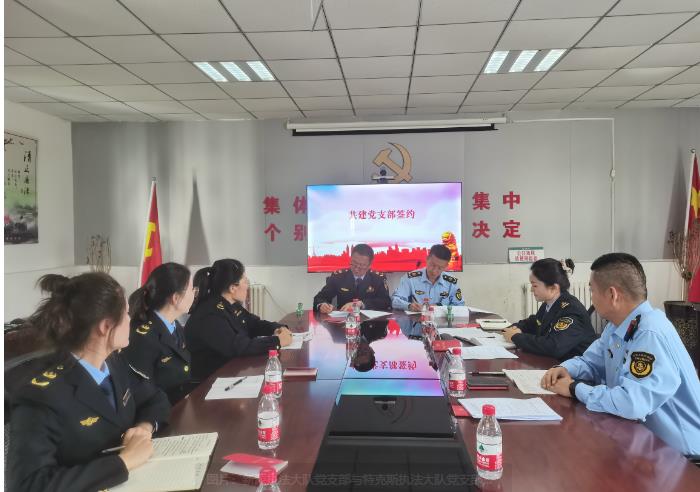 双方将围绕组织建设互促、主题活动共办、党建载体互用、科学发展共赢等四个方面开展联建共建。积极探索新源执法大队和特克斯执法大队在组织联建、党员互动、活动互联、资源共享的有效途径。